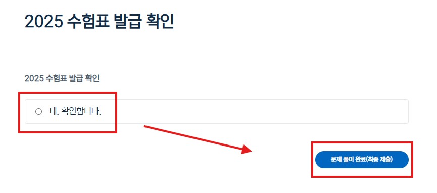 ④ [네. 확인합니다] 클릭 후, [문제 풀이 완료(최종 제출)] 클릭